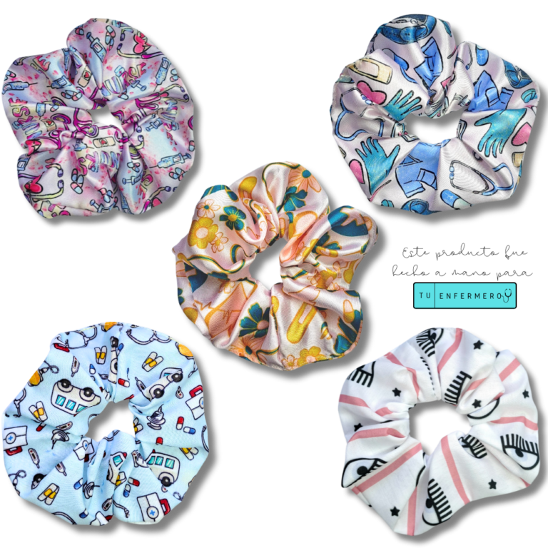 Colitas de pelo hechas a mano en Uruguay para Tu Enfermero. Cómodas, resistentes y con estampados únicos inspirados en la enfermería. Podés combinarlas con los tote bags, organizadores de bolsillo y gorros quirúrgicos de la misma colección.