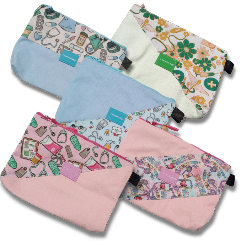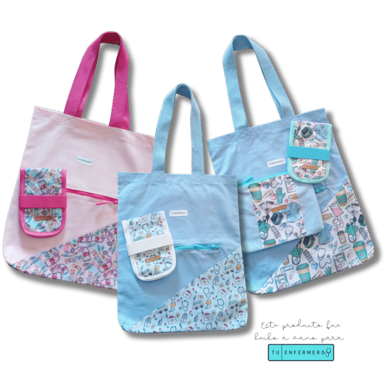Bolso práctico y con estilo, hecho a mano en Uruguay. Cada tote combina practicidad y estilo: incluye un bolsillo exterior con cierre, es liviano y viene en varios colores con estampados inspirados en la enfermería.