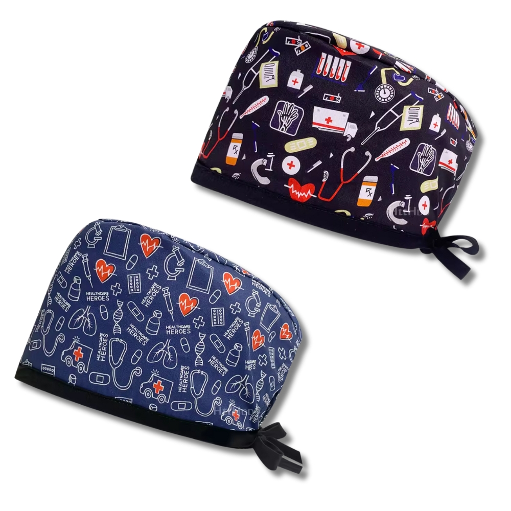 Gorros quirúrgicos con estampados divertidos y coloridos, ideales para profesionales de la salud.