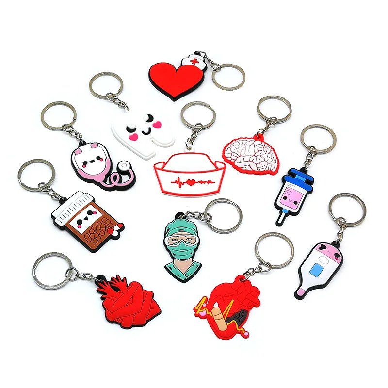 | Llaveros enfermeria PVC | Ambulancia, Botiquin, Cerebro, Corazon, Corazon con Brazos, Corazon con esteto, Corazon con Gorro, Enfermera Brazo, Enfermera con Tapa Bocas, Esteto Rosado, Estomago, Frasco pildoras, gorro enfermeria, Jeringa, Logo Emergencia, Muela, Ovarios, Termometro, Uniforme Rosa, Uniforme verde, Uniforme Violeta |