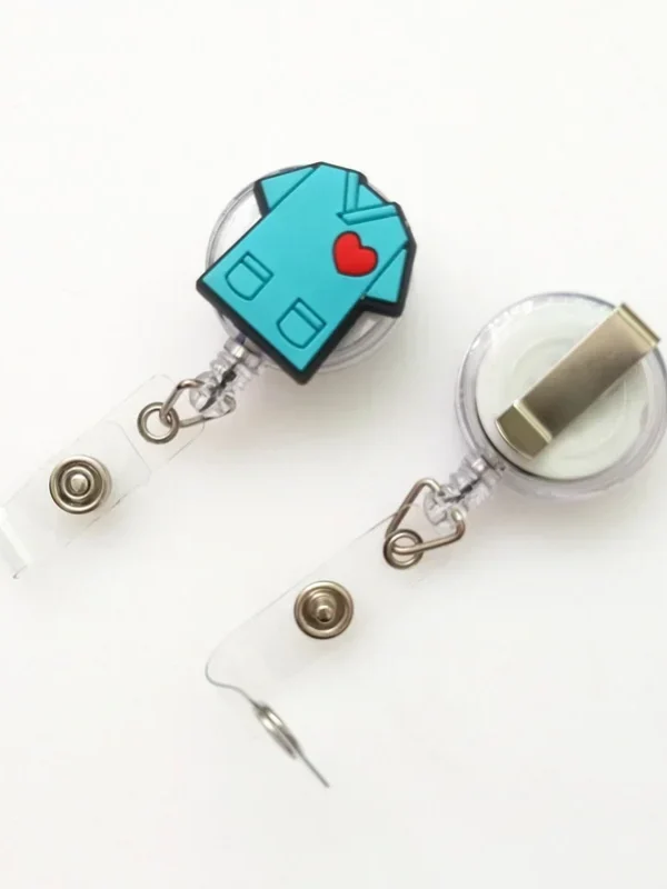 Prendedor retractil con diseños para tarjeta de identificacion.