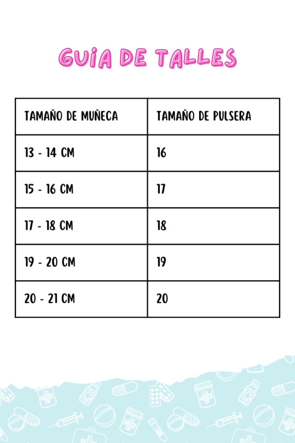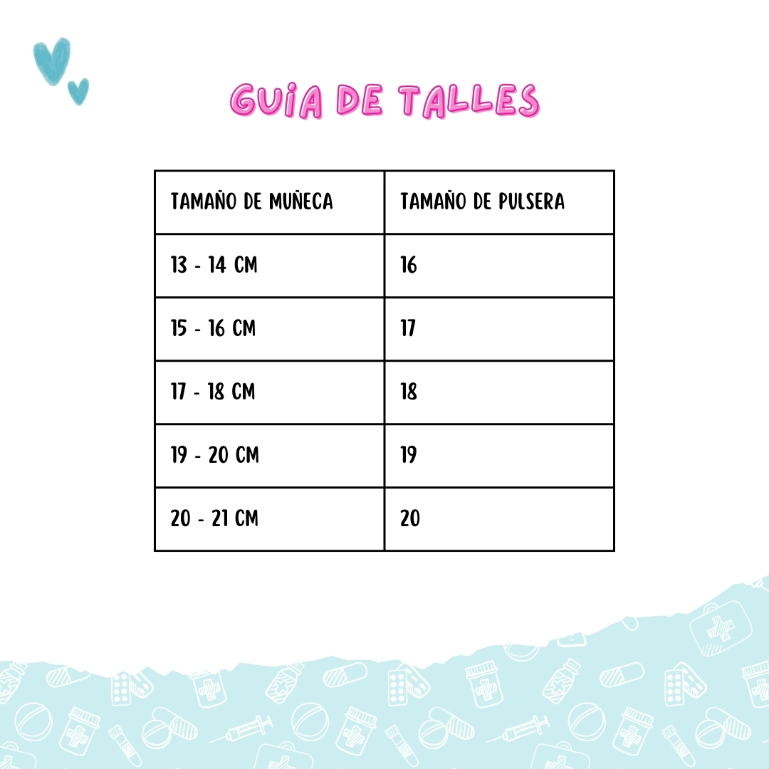 | Tamaño Pulsera | Talle 16, Talle 17, Talle 18, Talle 19, Talle 20 |