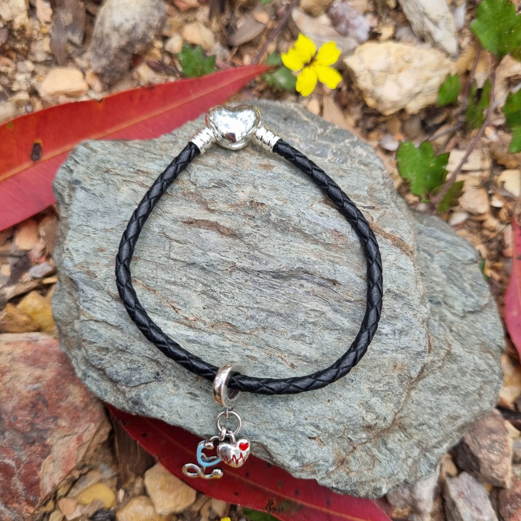 Pulsera de cuerina para dijes negra con corazón